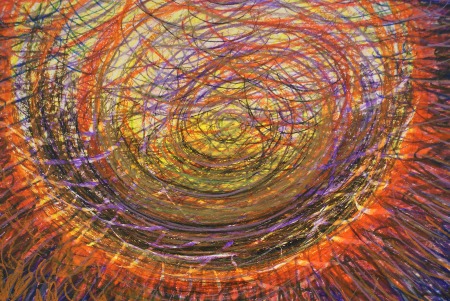 Die ausdrucksstarke Farbenergie und hohe Plastizität entsteht erst nach dem Übereinanderlegen mehrfacher Materialebenen und dem Hochpolieren der gesamten Malerei.